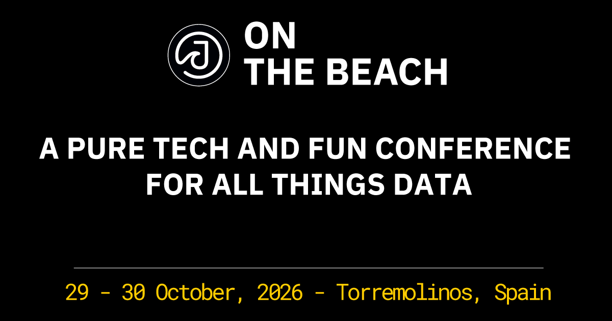 A Big Data conference for developers, DevOps & Data Scientists On The Beach! October 29-30, 2026 in Torremolinos, Spain. If you are into Distributed Systems, Data Engineering, DevSecOps or Data Science, buy your tickets NOW!