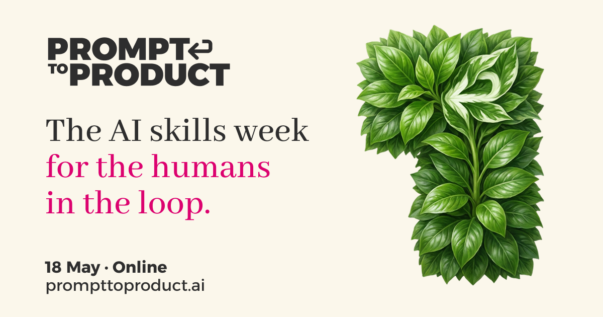 An online AI skills week for designers and product makers. Trainings, talks, and hands-on sessions. Week of 18 May 2026.