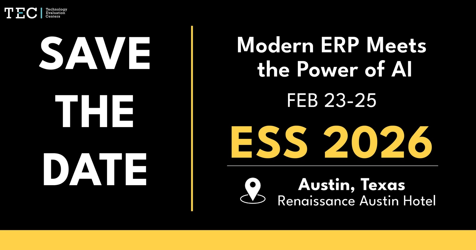 The Enterprise Software Showcase (ESS) is an event designed to connect enterprise solution providers with professionals driving digital transformation in their organizations. During the event we will explore how AI is reshaping the ERP landscape—making it smarter, faster, and more responsive to the needs of modern businesses. Attendees will gain a clear view of where the market is heading, how leading organizations are adapting, and what steps decision-makers can take to leverage AI-powered ERP for long-term success. Hosted by Technology Evaluation Centers (TEC), ESS brings together a unique mix of executives, consultants, analysts, and solution vendors to share insights, explore innovations and build connections.