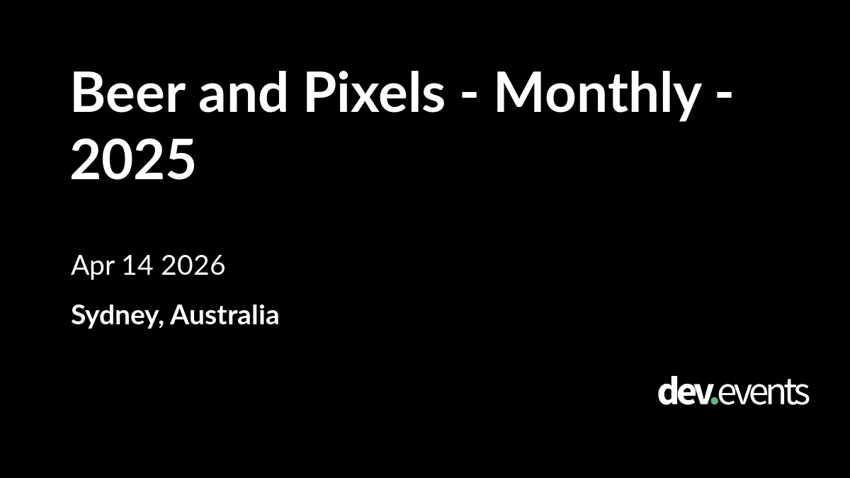 Beer and Pixels - Monthly - 2025 is happening on April 14, 2026 in Sydney, Australia. More information: https://dev.events/conferences/beer-and-pixels-monthly-2025-313249478
