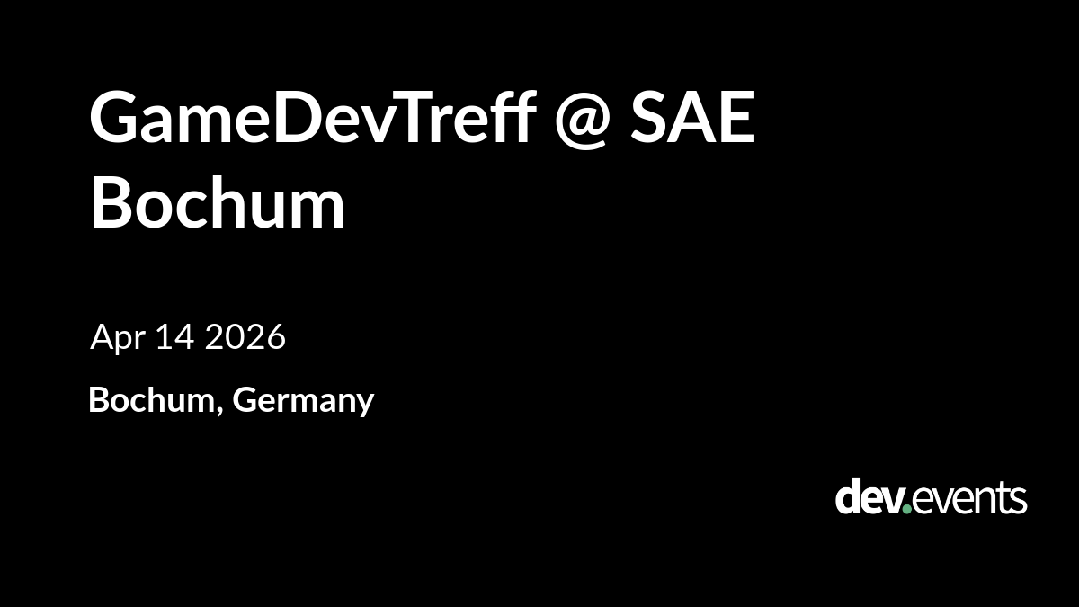 GameDevTreff @ SAE Bochum is happening on April 14, 2026 in Bochum, Germany. More information: https://dev.events/conferences/game-dev-treff-sae-bochum-gnczvtyjcgbsb
