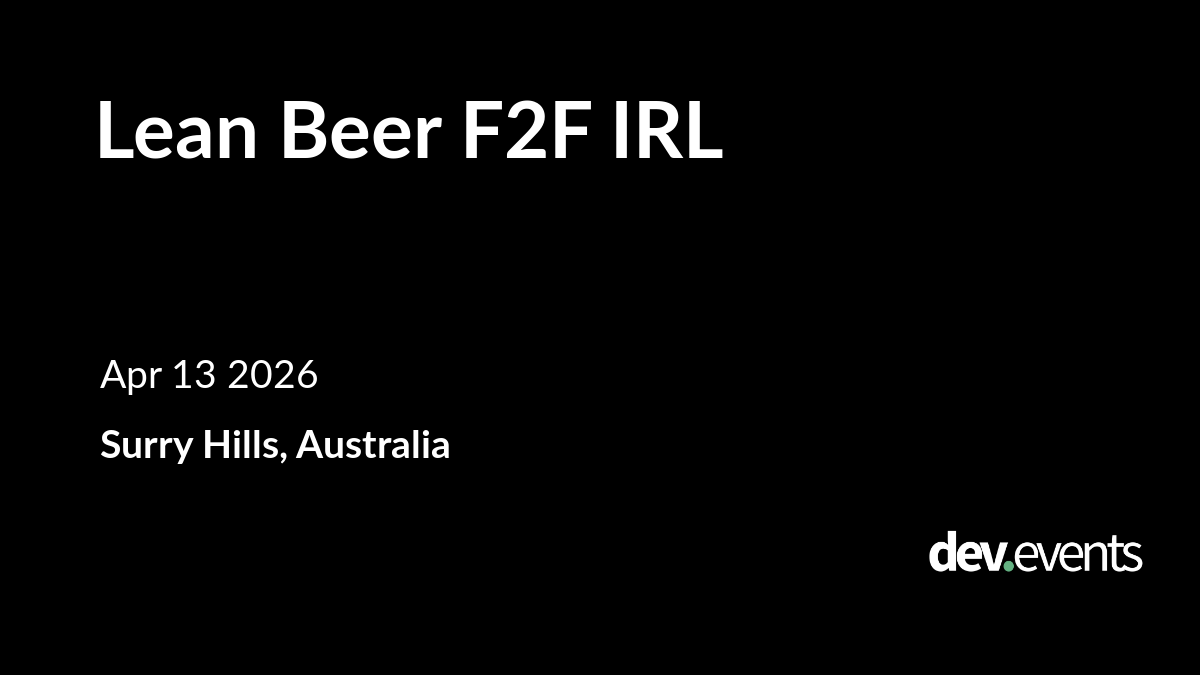 Lean Beer F2F IRL is happening on April 13, 2026 in Surry Hills, Australia. More information: https://dev.events/conferences/lean-beer-f2-f-irl-ntfzvtyjcgbrb
