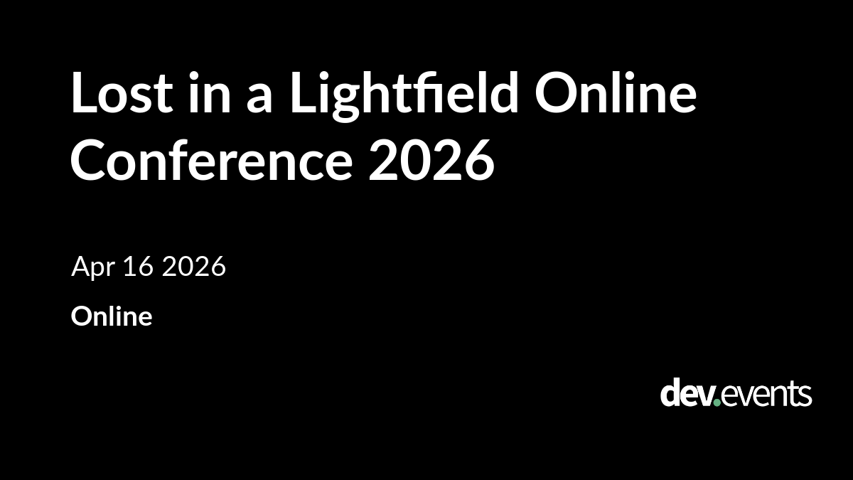 Lost in a Lightfield Online Conference 2026 is happening on April 16, 2026, Online. More information: https://dev.events/conferences/lost-in-a-lightfield-online-conference-2026-wx64-u9g