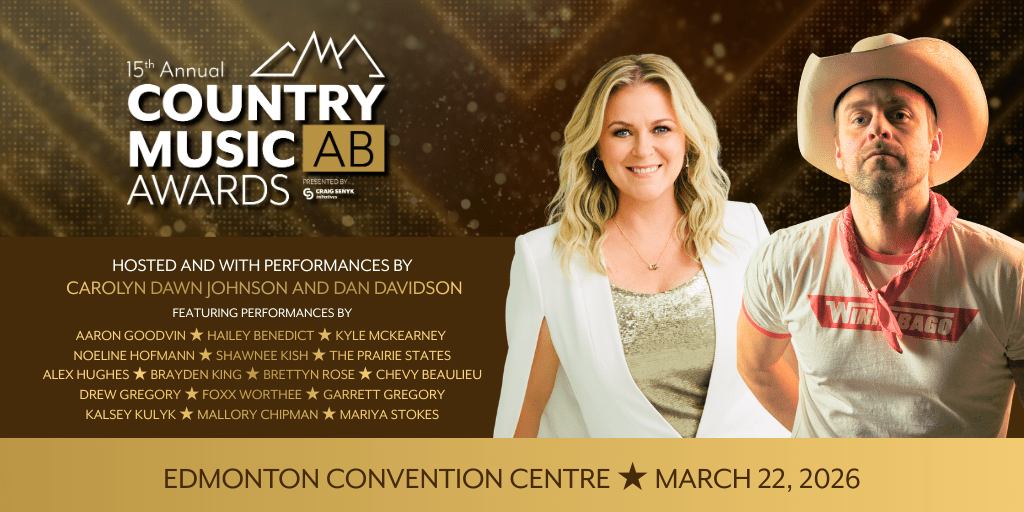 Get ready for an unforgettable Awards Show as we honour Alberta’s incredible country music talent at the 15th Annual Country Music Alberta Awards, hosted by Carolyn Dawn Johnson and Dan Davidson and featuring performances by Carolyn Dawn Johnson, Dan Davidson, Aaron Goodvin, Hailey Benedict, Kyle McKearney, Noeline Hofmann, Shawnee Kish, The Prairie States, Alex Hughes, Brayden King, Brettyn Rose, Chevy Beaulieu, Drew Gregory, Foxx Worthee, Garrett Gregory, Kalsey Kulyk, Mallory Chipman, Mariya Stokes.