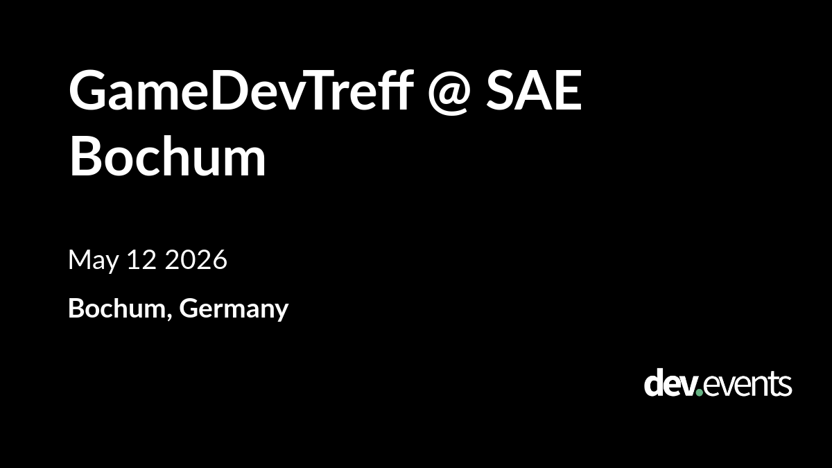 GameDevTreff @ SAE Bochum is happening on May 12, 2026 in Bochum, Germany. More information: https://dev.events/conferences/game-dev-treff-sae-bochum-gnczvtyjchbqb