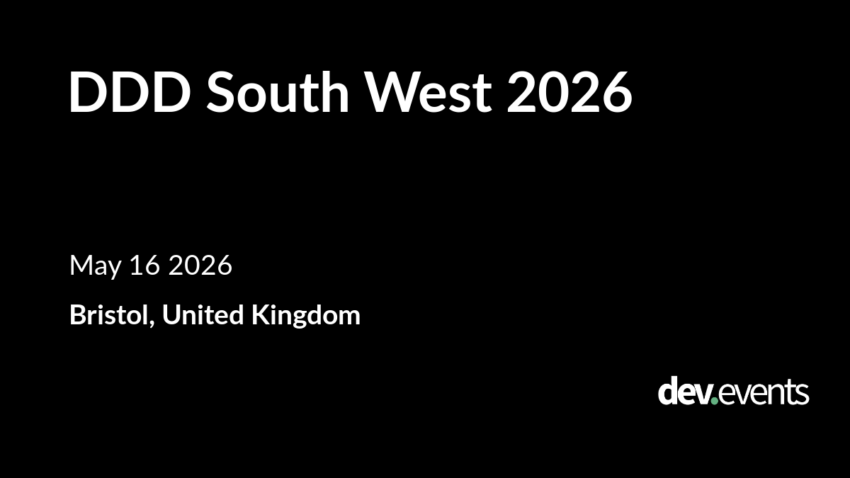 DDD South West 2026 is happening on May 16, 2026 in Bristol, United Kingdom. More information: https://dev.events/conferences/ddd-south-west-2026-pqbmmjx1